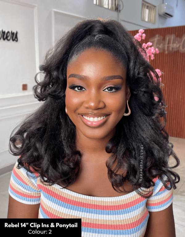 THC Synthetic 14″ Clip Ins + Ponytail – “REBEL”