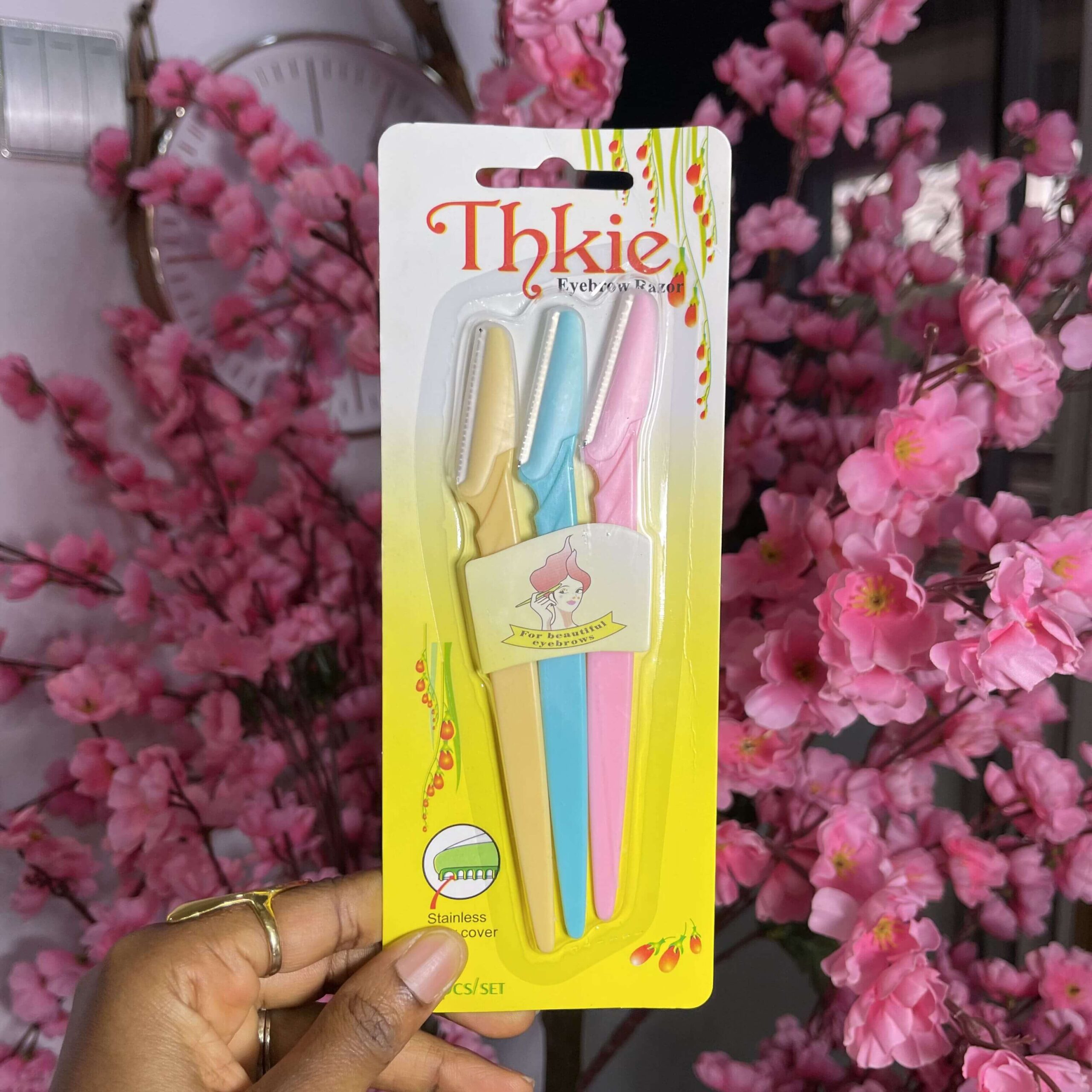 Thkie Eyebrow Razor removes the fine hairs of the eyebrow, neck and face as well as unnecessary hairs elsewhere. It features a stainless steel safety cover attached to each blade to protect a woman’s sensitive skin and prevent blade from cutting too closely while shaving; even beginners can easily and safely use it.